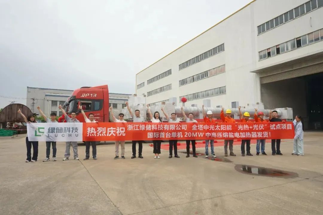 2024年6月24日,綠儲科技舉行全球首臺20MW中高壓熔鹽電加熱器發(fā)貨儀式,設(shè)備抵達(dá)金塔項目現(xiàn)場;