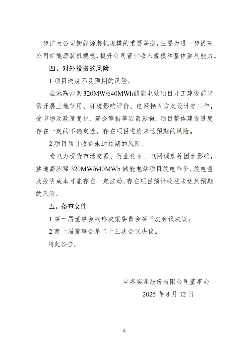 寶塔實(shí)業(yè)表示,鹽池高沙窩320MW/640MWh儲(chǔ)能電站項(xiàng)目建設(shè)系公司根據(jù)《自治區(qū)發(fā)展改革委關(guān)于推進(jìn)特色優(yōu)勢產(chǎn)業(yè)綠電園區(qū)儲(chǔ)能設(shè)施建設(shè)的通知》的要求,構(gòu)建“清潔低碳、安全高效”的現(xiàn)代能源產(chǎn)業(yè)體系,積極響應(yīng)自治區(qū)大力開發(fā)可再生能源政策、進(jìn)一步擴(kuò)大公司新能源裝機(jī)規(guī)模的重要舉措,主要為進(jìn)一步提高公司新能源裝機(jī)規(guī)模,提升公司營業(yè)收入規(guī)模和整體盈利能力。