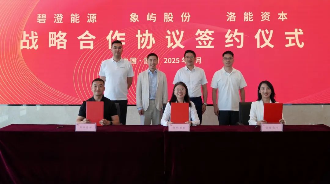 中國儲能網(wǎng)訊:8月12日,象嶼股份與杭州碧澄能源發(fā)展有限公司(以下簡稱“碧澄能源”)、洛能(杭州)股權(quán)投資有限公司(“洛能資本”)簽署戰(zhàn)略合作協(xié)議。象嶼集團黨委委員、副總裁,象嶼股份黨委書記、董事長吳捷,碧澄能源董事長、洛能資本首席執(zhí)行官李文軒,碧澄能源總經(jīng)理龐博,象嶼能源發(fā)展董事黃盛宇出席并見證簽約。象嶼股份副總經(jīng)理卓薇,碧澄能源副總裁兼首席營銷官趙蘇,洛能資本首席投資官、副總經(jīng)理楊郁分別代表三方簽署戰(zhàn)略合作協(xié)議。