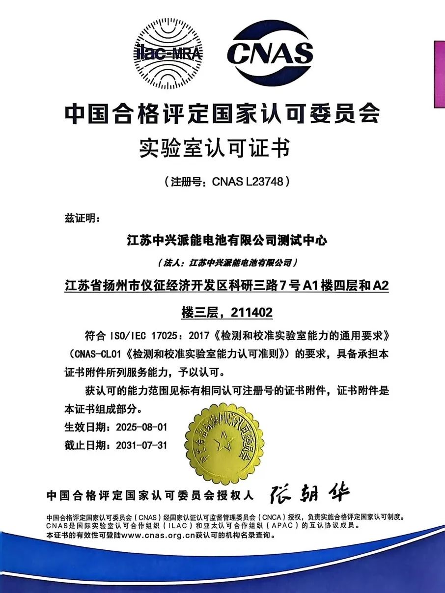 在本次評審中,CNAS專家組依據ISO/IEC 17025:2017《檢測和校準實驗室能力的通用要求》,對揚州基地實驗室的環(huán)境設施、儀器設備、人員資質、質量管理體系及技術能力進行了全面審核。實驗室在電池性能檢測、環(huán)境適應性測試以及多項理化分析項目上展現(xiàn)出的專業(yè)水準和技術實力,獲得了評審組的一致認可。