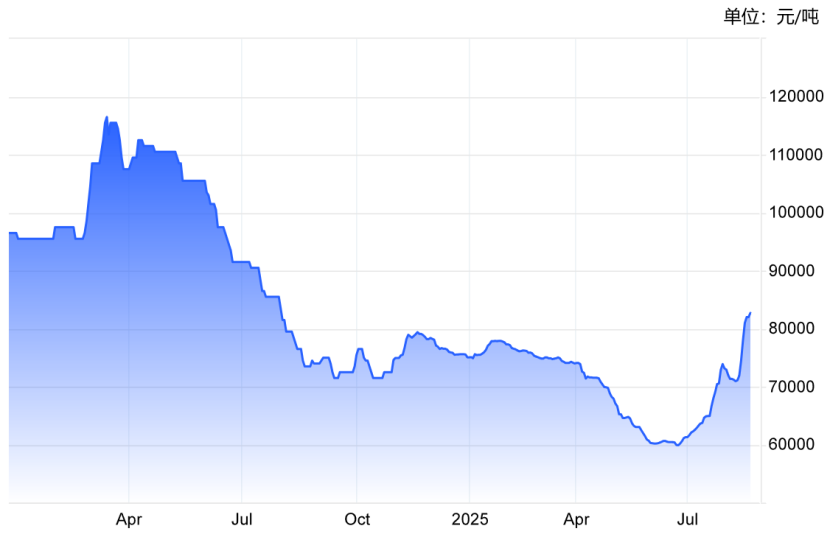 自今年6月觸底以來(lái),碳酸鋰價(jià)格在短短一個(gè)多月內(nèi)漲幅超過36.9%,至7月底重回8萬(wàn)元/噸的“盈虧平衡線”,此后,鋰價(jià)震蕩性上漲,截至8月18日國(guó)內(nèi)期貨收盤,碳酸鋰2509合約收?qǐng)?bào)89300元/噸,漲4.86%。