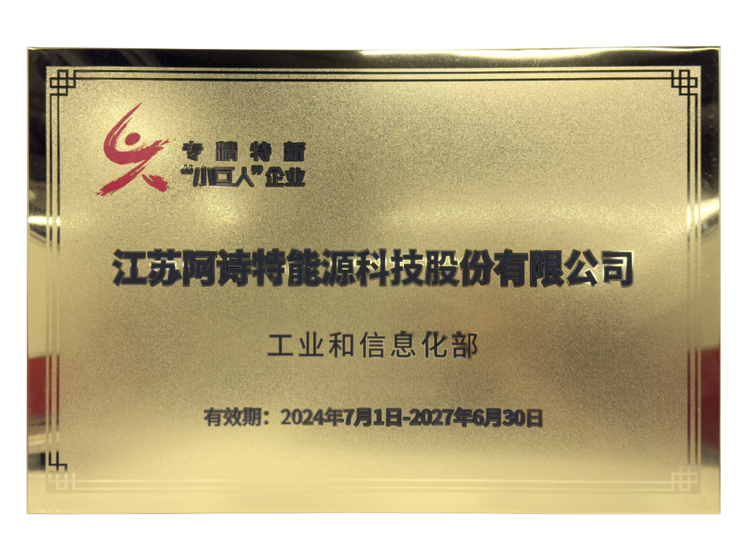 近日,江蘇阿詩特能源科技股份有限公司(以下簡稱“阿詩特能源”)憑借在儲能領(lǐng)域的技術(shù)深耕與創(chuàng)新突破,成功入選2025年江蘇省專精特新中小企業(yè)名單。這是繼2024年9月獲評國家級專精特新“小巨人”企業(yè)后,公司在一年內(nèi)再獲省級權(quán)威認定,成為 “雙料小巨人”企業(yè)。這一里程碑標(biāo)志著企業(yè)在專業(yè)化、精細化、特色化及創(chuàng)新能力上的綜合實力再獲政府與行業(yè)高度認可。
