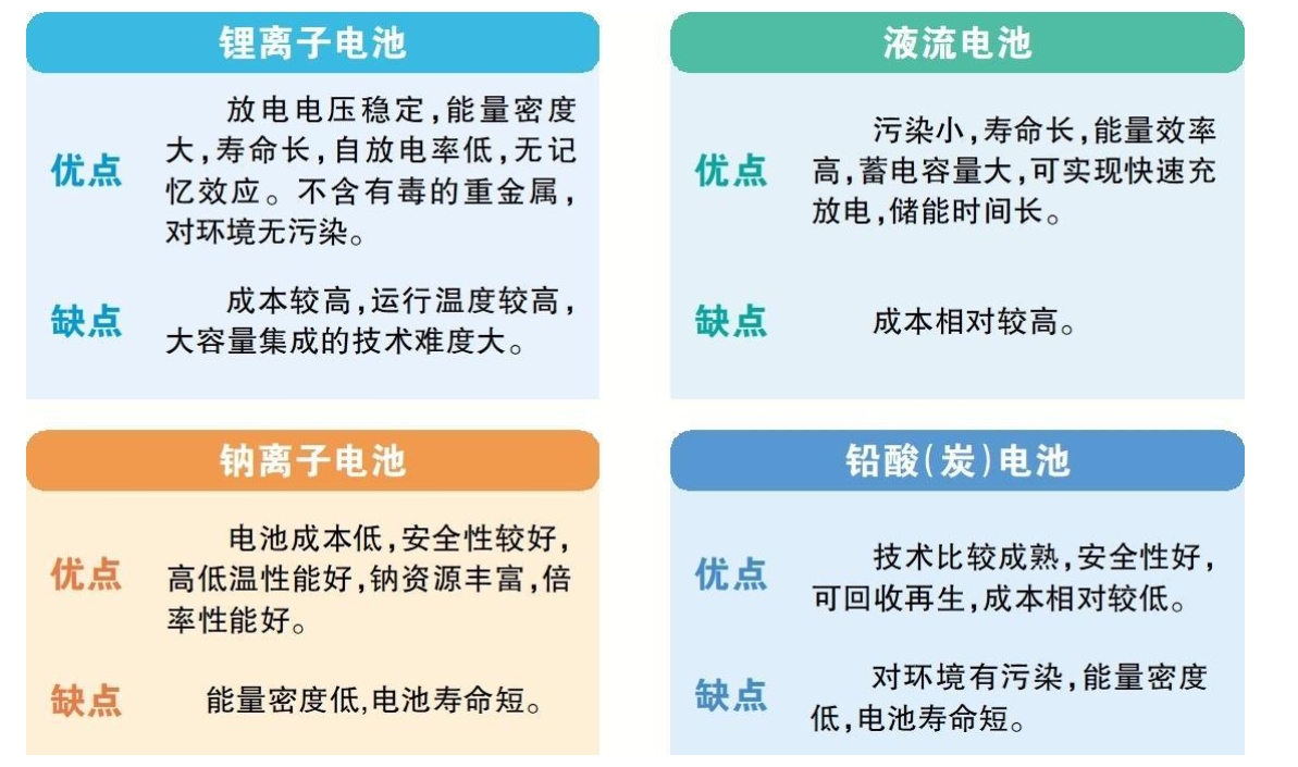 在眾多儲(chǔ)能技術(shù)中,電化學(xué)儲(chǔ)能技術(shù)發(fā)展速度相對(duì)較快。常見(jiàn)的電化學(xué)儲(chǔ)能技術(shù)主要有鋰離子電池、液流電池、鈉離子電池、鉛酸(炭)電池等類型。
