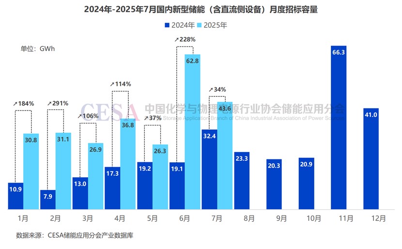 2025年1-7月儲(chǔ)能(含直流側(cè)設(shè)備)采招落地總規(guī)模已超過200GWh。