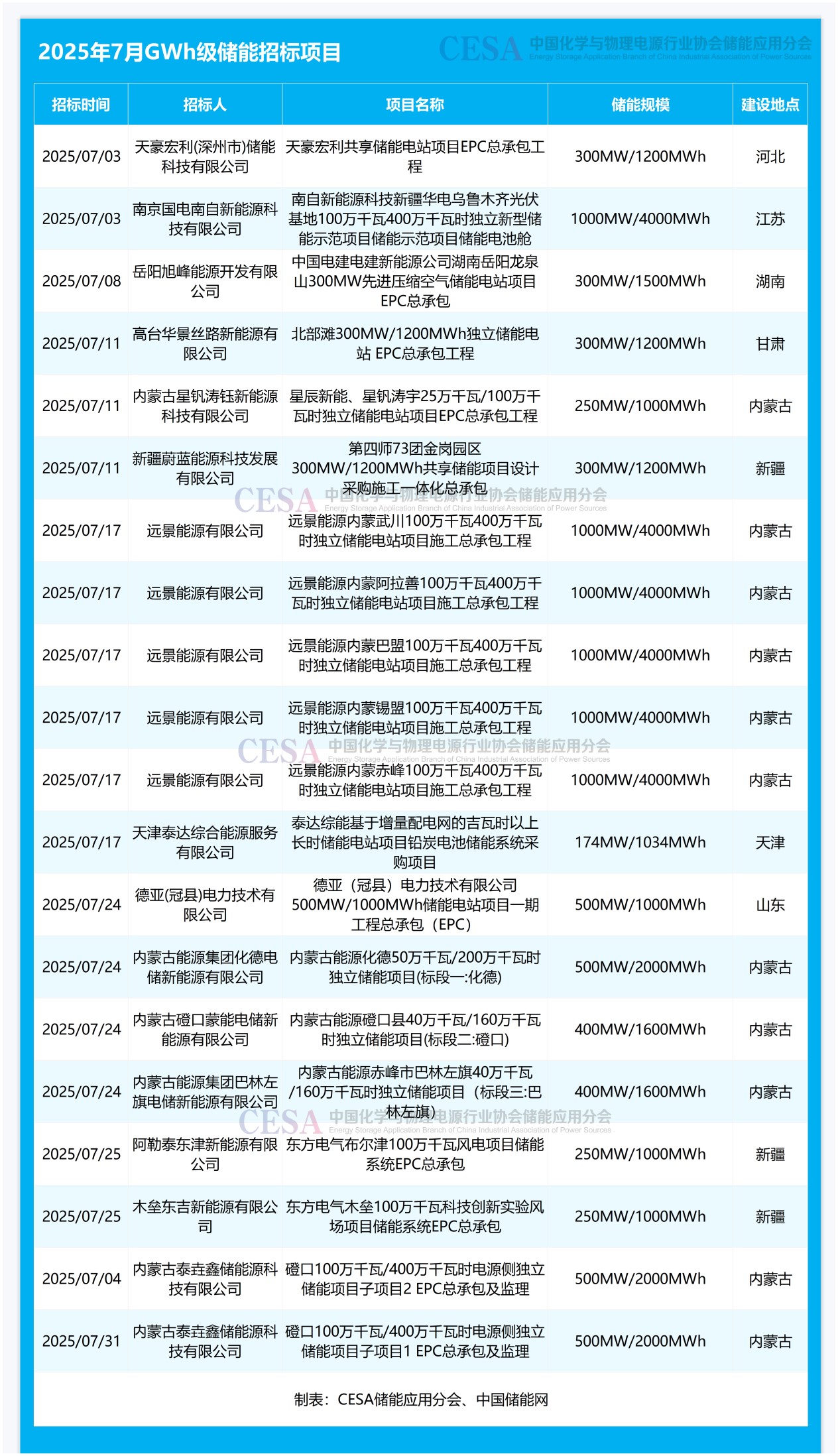 7月20個(gè)GWh級(jí)儲(chǔ)能項(xiàng)目啟動(dòng)招標(biāo)