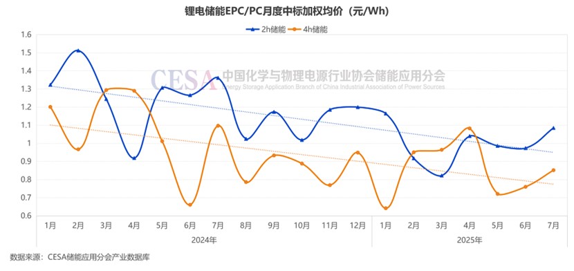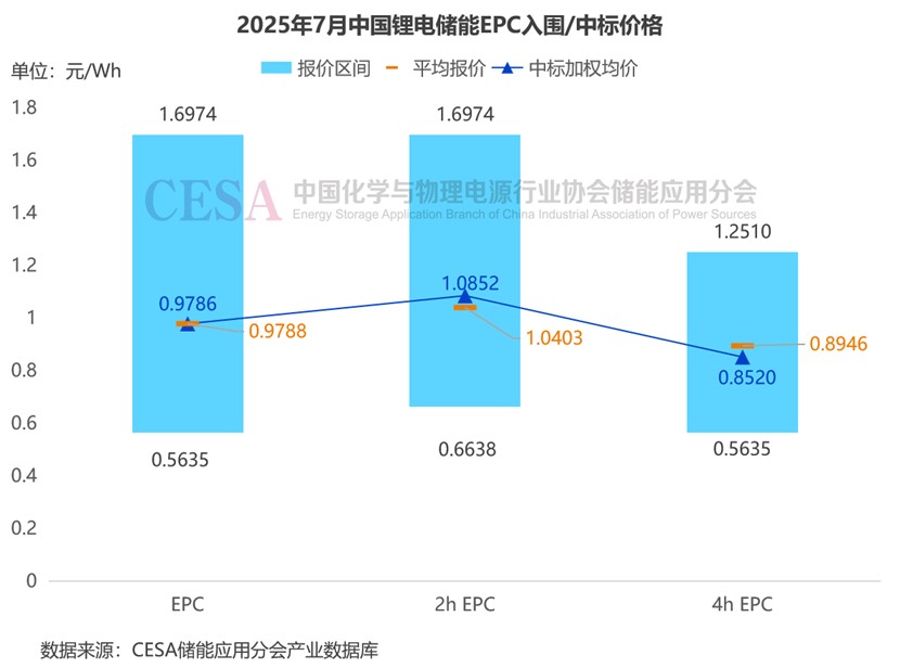 據(jù)CESA儲(chǔ)能應(yīng)用分會(huì)產(chǎn)業(yè)數(shù)據(jù)庫不完全統(tǒng)計(jì),2025年7月,源網(wǎng)側(cè)鋰電儲(chǔ)能EPC/PC入圍報(bào)價(jià)在0.5635-1.6974元/Wh區(qū)間內(nèi),平均報(bào)價(jià)0.9788元/Wh,中標(biāo)加權(quán)均價(jià)0.9786元/Wh,環(huán)比增長(zhǎng)14.21%。