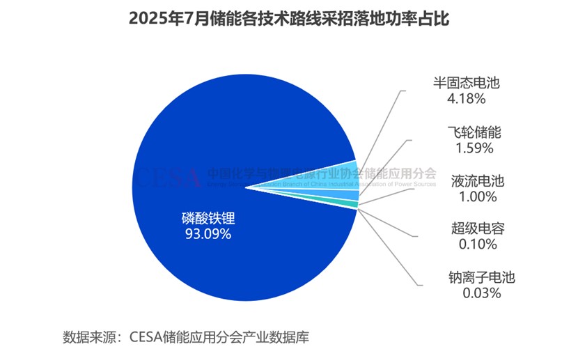 據(jù)CESA儲(chǔ)能應(yīng)用分會(huì)產(chǎn)業(yè)數(shù)據(jù)庫不完全統(tǒng)計(jì),2025年7月,明確技術(shù)路線的儲(chǔ)能采招(含直流側(cè)設(shè)備)落地項(xiàng)目共計(jì)96.3GW/26.94GWh。
