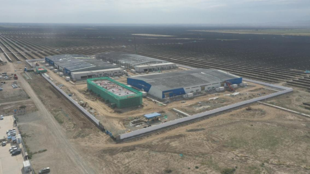 建設中的三峽集團新疆吉木薩爾100萬千瓦光伏+20萬千瓦/100萬千瓦時全釩液流儲能一體化項目儲能電站。