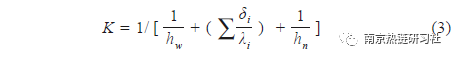 由集裝箱的傳熱過(guò)程可知,集裝箱艙體內(nèi)部、外部和艙體間為對(duì)流傳熱,艙體壁面間是導(dǎo)熱傳熱,故傳熱系數(shù)K表達(dá)式為:
