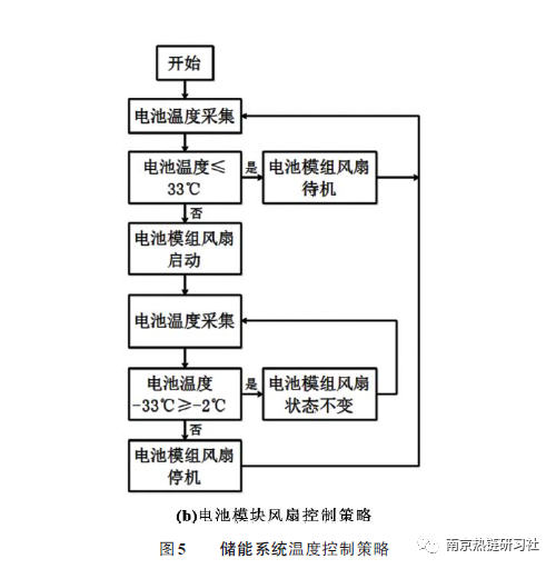 儲(chǔ)能系統(tǒng)溫度控制策略包括空調(diào)控制和電池模塊風(fēng)扇控制,如圖5所示。