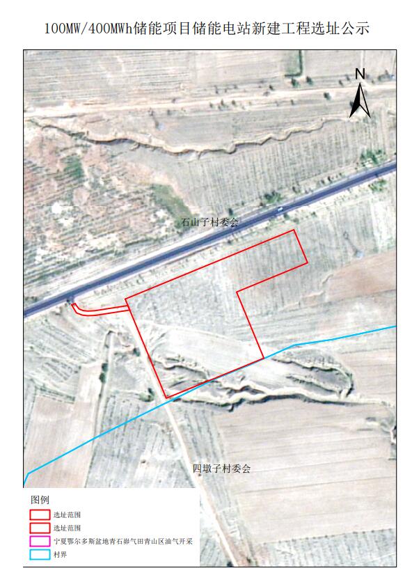 中國儲能網(wǎng)訊:8月25日,鹽池縣自然資源局發(fā)布100MW/400MWh儲能項目儲能電站新建工程選址公示。