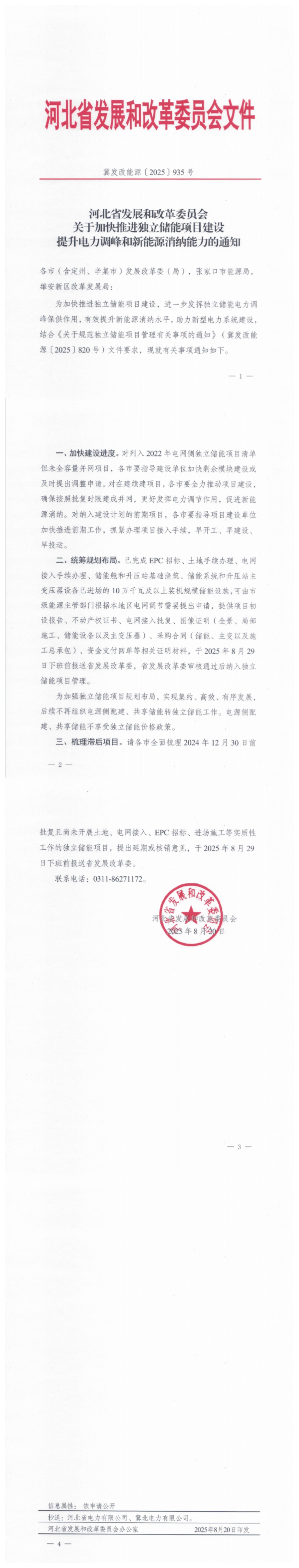 中國儲能網(wǎng)訊:近日,河北省發(fā)展和改革委員會發(fā)布《關(guān)于加快推進(jìn)獨(dú)立儲能項目建設(shè)提升電力調(diào)峰和新能源消納能力的通知》。