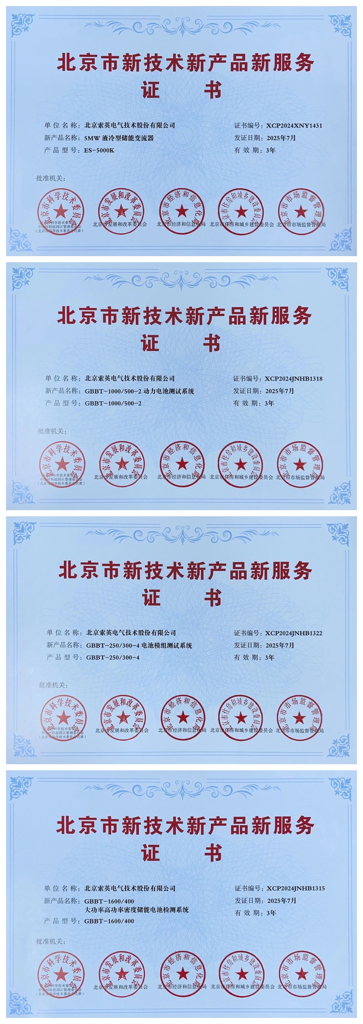 中國儲(chǔ)能網(wǎng)訊:近日,索英電氣的5MW液冷型儲(chǔ)能變流器、動(dòng)力電池測試系統(tǒng)、電池模組測試系統(tǒng)及大功率高功率密度儲(chǔ)能電池檢測系統(tǒng),憑借其卓越的技術(shù)創(chuàng)新性與顯著的市場競爭力,榮獲由北京市科學(xué)技術(shù)委員會(huì)、中關(guān)村科技園區(qū)管理委員會(huì)、北京市發(fā)展和改革委員會(huì)、北京市經(jīng)濟(jì)和信息化局、北京市住房和城鄉(xiāng)建設(shè)委員會(huì)、北京市市場監(jiān)督管理局等六部門聯(lián)合頒發(fā)的《北京市新技術(shù)新產(chǎn)品新服務(wù)》證書。