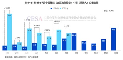 政策指揮棒下,儲能市場迎來“井噴式”增長。CESA儲能應(yīng)用分會產(chǎn)業(yè)數(shù)據(jù)庫數(shù)據(jù)顯示,僅2025年1-7月國內(nèi)儲能(含直流側(cè)設(shè)備)采招落地總規(guī)模就已超過200GWh。
