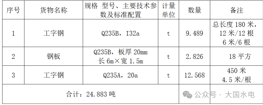 因中國電建水電十四局廣東中洞抽水蓄能電站機電安裝項目部工字鋼、鋼板采購項目需要,我單位擬采用競價采購(公開詢比價)方式進行下列貨物的批量采購,請按以下要求于 2025 年 09 月 05 日 16時 00 分前將報價文件提交至中國電建集中采購平臺。