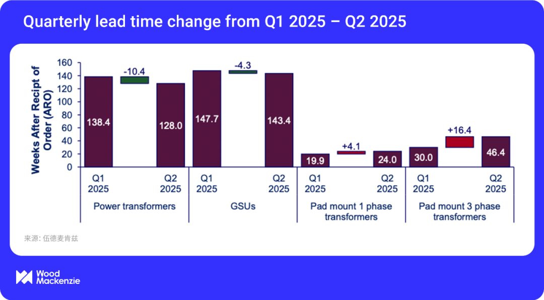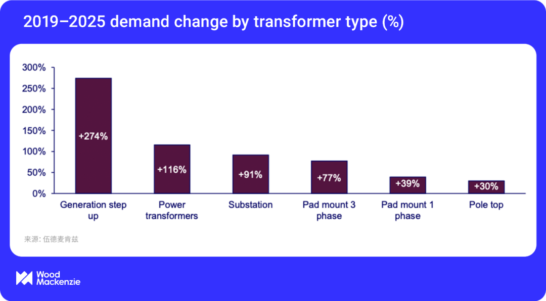 需求的激增使變壓器市場陷入嚴重短缺,供應完全無法滿足迅猛增長的需求。根據(jù)伍德麥肯茲對年度供需的估算,目前電力變壓器和配電變壓器的供應缺口已分別達到30%和6%。