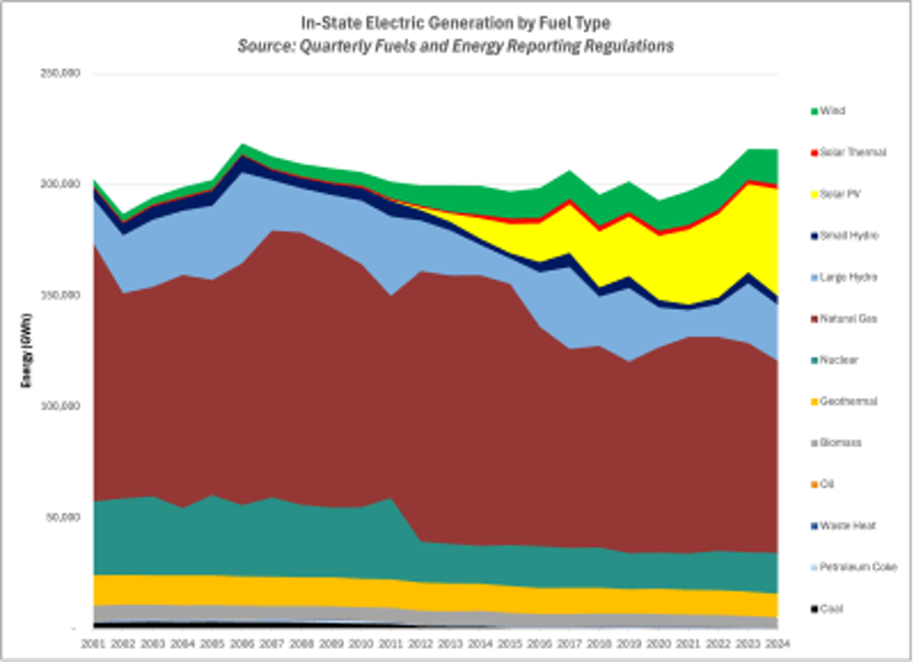 2001年至2024年各類型發(fā)電情況。(來源:加州能源委員會[5])