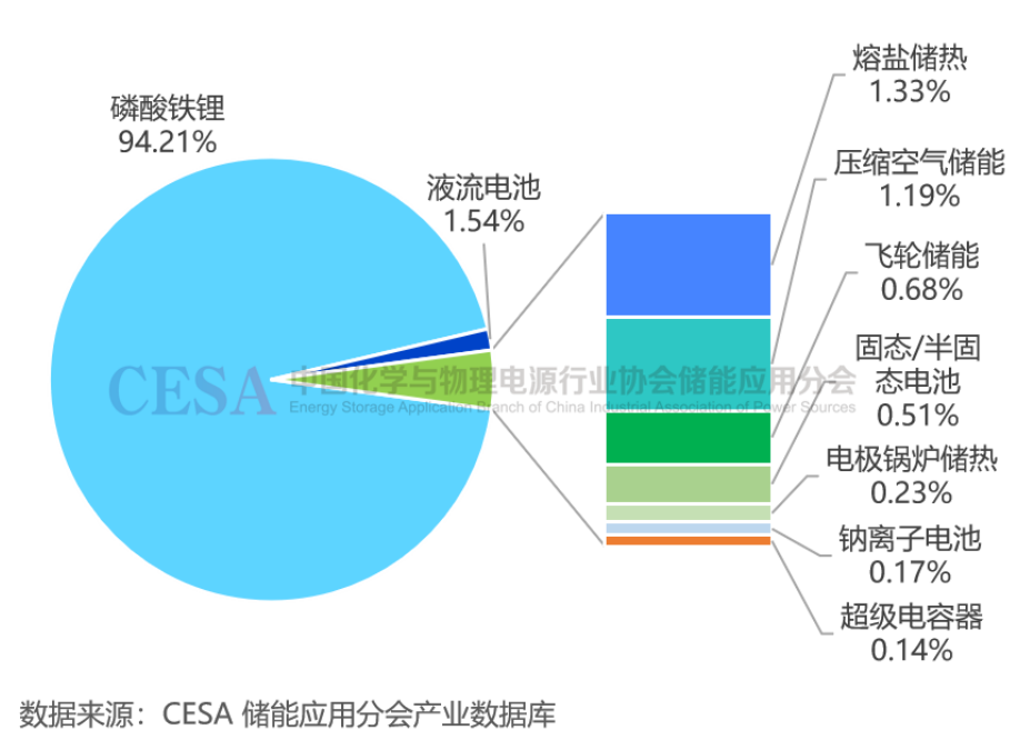 圖 2025年1-6月新型儲能各技術(shù)路線新增裝機功率占比