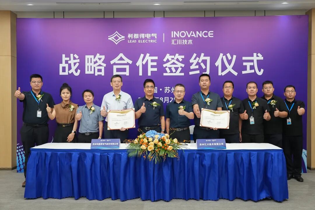 利雅得電氣總經(jīng)理馮建民率核心團(tuán)隊(duì)出席,與匯川技術(shù)西部戰(zhàn)區(qū)總監(jiān)孟凱及團(tuán)隊(duì)共同見(jiàn)證這一重要時(shí)刻。