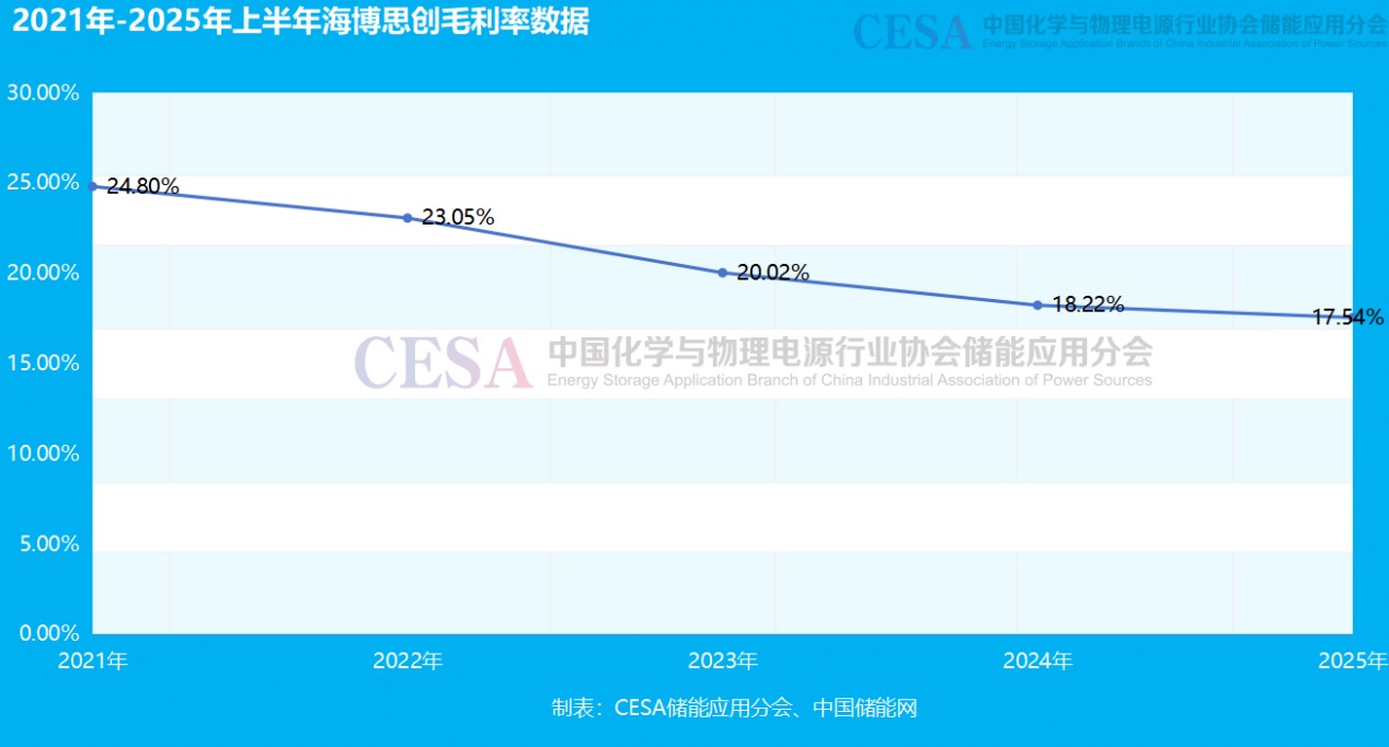 盡管營收保持增長,但海博思創(chuàng)的毛利率卻從2024年同期的19.48%下滑至17.54%,這一數(shù)據(jù)折射出儲能行業(yè)“增收不增利”的普遍困境。