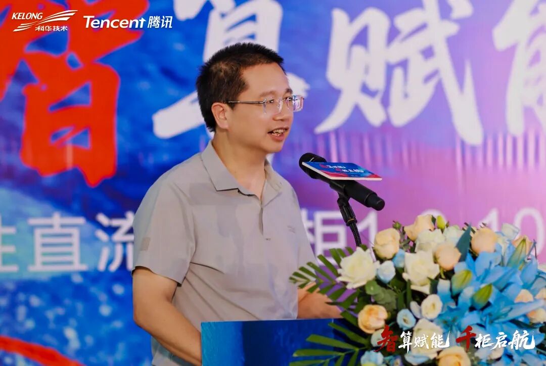 慶典儀式上,科華數(shù)據(jù)總裁陳四雄先生發(fā)表致辭。他衷心感謝騰訊團隊的長期信任與支持以及雙方員工的辛勤付出。