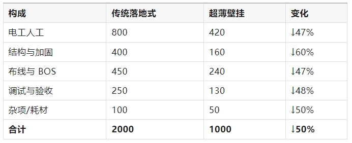 結(jié)果:用**“小時數(shù)×人次×輔材數(shù)”**三連降,直接落在安裝成本(CapEx 的軟成本)上。