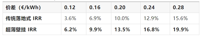 解讀:同一電價環(huán)境下,僅降低安裝成本即可“平移”IRR 曲線 2–3 個百分點(diǎn);當(dāng)疊加高峰價差 ≥0.20€/kWh或更高自用率,回收期可縮短 1–1.5 年.