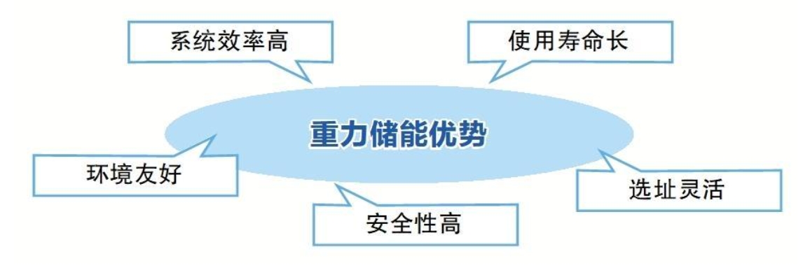 重力儲(chǔ)能的能量轉(zhuǎn)換過(guò)程僅涉及機(jī)械運(yùn)動(dòng),因此系統(tǒng)的能量轉(zhuǎn)換效率相對(duì)較高。系統(tǒng)相關(guān)組件的壽命通常為30~40年,運(yùn)行期間不需要頻繁更換。電站選址靈活,建設(shè)周期短,功率和容量可以根據(jù)系統(tǒng)需要進(jìn)行靈活設(shè)計(jì)和擴(kuò)展。重力儲(chǔ)能全產(chǎn)業(yè)鏈的全生命周期過(guò)程不產(chǎn)生固態(tài)、液態(tài)、氣態(tài)污染物,不涉及化學(xué)反應(yīng),安全性高,運(yùn)行可靠。