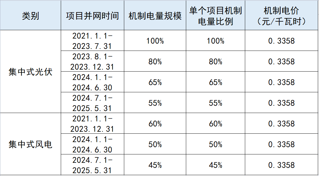 三是機(jī)制電量總規(guī)模較存量適度擴(kuò)大。機(jī)制電量總規(guī)模為光伏上網(wǎng)電量的60%,風(fēng)電上網(wǎng)電量的50%,分別較存量項(xiàng)目規(guī)模提高5個(gè)百分點(diǎn)。明確按全部上網(wǎng)電量的比例確定單個(gè)項(xiàng)目機(jī)制電量,未設(shè)置電量規(guī)模上限,促進(jìn)企業(yè)穩(wěn)發(fā)多發(fā)。