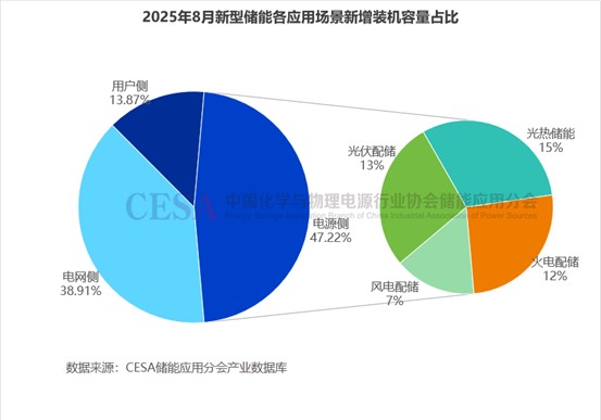 應(yīng)用場景方面,8月電源側(cè)新增并網(wǎng)0.92GW/3.87GWh,容量占比47.22%;電網(wǎng)側(cè)新增并網(wǎng)1.4GW/3.19GWh,容量占比38.91%;用戶側(cè)新增并網(wǎng)0.52GW/1.14GWh,容量占比13.87%。