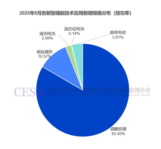 從儲(chǔ)能技術(shù)路線來看,8月新增投運(yùn)儲(chǔ)能項(xiàng)目中,磷酸鐵鋰電池儲(chǔ)能技術(shù)仍是主流,總規(guī)模達(dá)2.37GW/5.81GWh,功率占比83.4%。