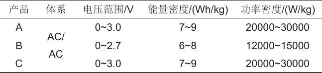 表1 已實現(xiàn)產(chǎn)業(yè)化應(yīng)用的雙電層超級電容器主要參數(shù)
