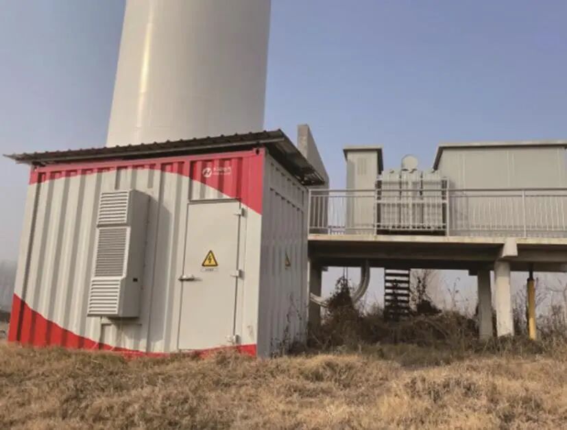 目前我國已有多個“一機一儲”項目示范。例如在廣東陽江雷平風電場的“一機一儲”項目中,采用100 kW/15 s超級電容+100 kW/200 kWh鋰電池的混合儲能系統(tǒng),能有效抑制風機輸出功率波動,并且在電網(wǎng)頻率出現(xiàn)偏差時,超級電容可以快速響應(yīng),提供或吸收功率,幫助電網(wǎng)恢復到額定頻率。四川會東龍海風電場的“一機一儲”項目中,600 kW/7.77 kWh超級電容儲能系統(tǒng)與4.8 MW/9.6 MWh鋰電池儲能系統(tǒng)配合,可實現(xiàn)一次調(diào)頻、AGC等功能。