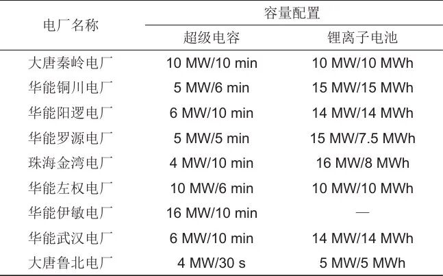 表3 超級電容火儲聯(lián)合調(diào)頻項目統(tǒng)計