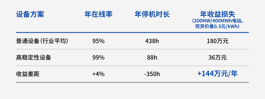 設(shè)備在線率是指儲(chǔ)能電站在計(jì)劃運(yùn)行時(shí)段內(nèi),實(shí)際可投入使用的時(shí)長占比,是保障電站收益的前提 —— 以200MW/400MWh獨(dú)立儲(chǔ)能電站為例,在線率每降低 1%,年均充放電量損失可達(dá)1200MWh。其核心影響因素可歸納為 “設(shè)備穩(wěn)定性、可維護(hù)性、靈活冗余機(jī)制” 三大維度。