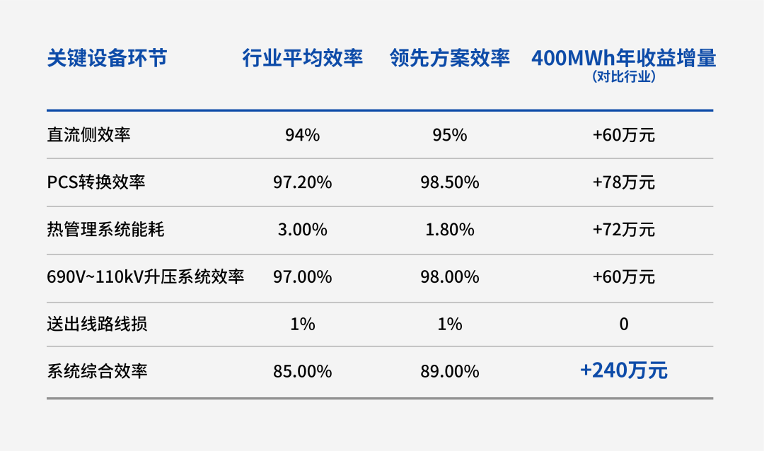設(shè)備運(yùn)行效率是指儲(chǔ)能電站從 “電網(wǎng)110kV充電” 到 “向電網(wǎng)110kV放電” 的全環(huán)節(jié)能量轉(zhuǎn)換效率,每提升 1%,年均收益可增加60萬元(以 200MW/400MWh 電站為例,現(xiàn)貨售電價(jià)0.4元/kWh計(jì))。其關(guān)鍵影響因素集中在 “能量轉(zhuǎn)換、熱管理、系統(tǒng)協(xié)同” 三大環(huán)節(jié)。
