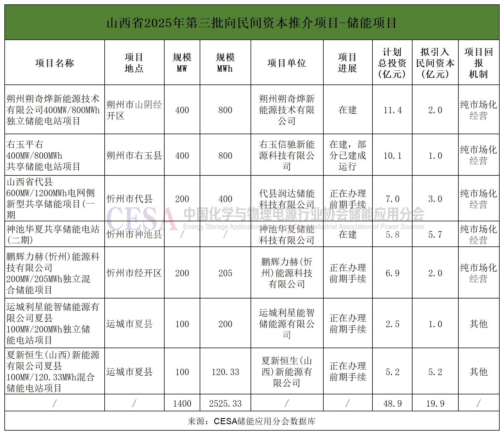 2.53GWh,擬引資19.9億元,山西2025第三批民間資本推介項(xiàng)目發(fā)布