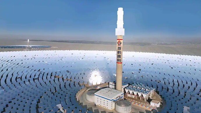 260米高的銀色巨塔拔地而起,1.2萬面超級(jí)鏡子組成的“森林”環(huán)繞四周,像“向日葵”一般精準(zhǔn)捕捉太陽軌跡,并將光線匯聚至塔頂。
