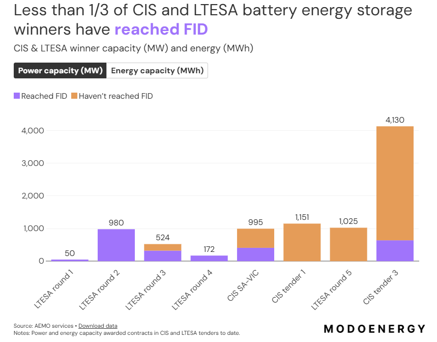 容量投資協(xié)議(CISA)并不能確保項目必然完成金融投資決策。雖然收益保障機制有助于推進用地協(xié)議、社會許可和并網(wǎng)流程,但金融機構(gòu)不會僅因項目獲得CISA就提供融資支持。有機構(gòu)指出,這類合同價值不足以保障債務融資。截至目前,前幾輪招標中僅有28%的電池容量完成FID。