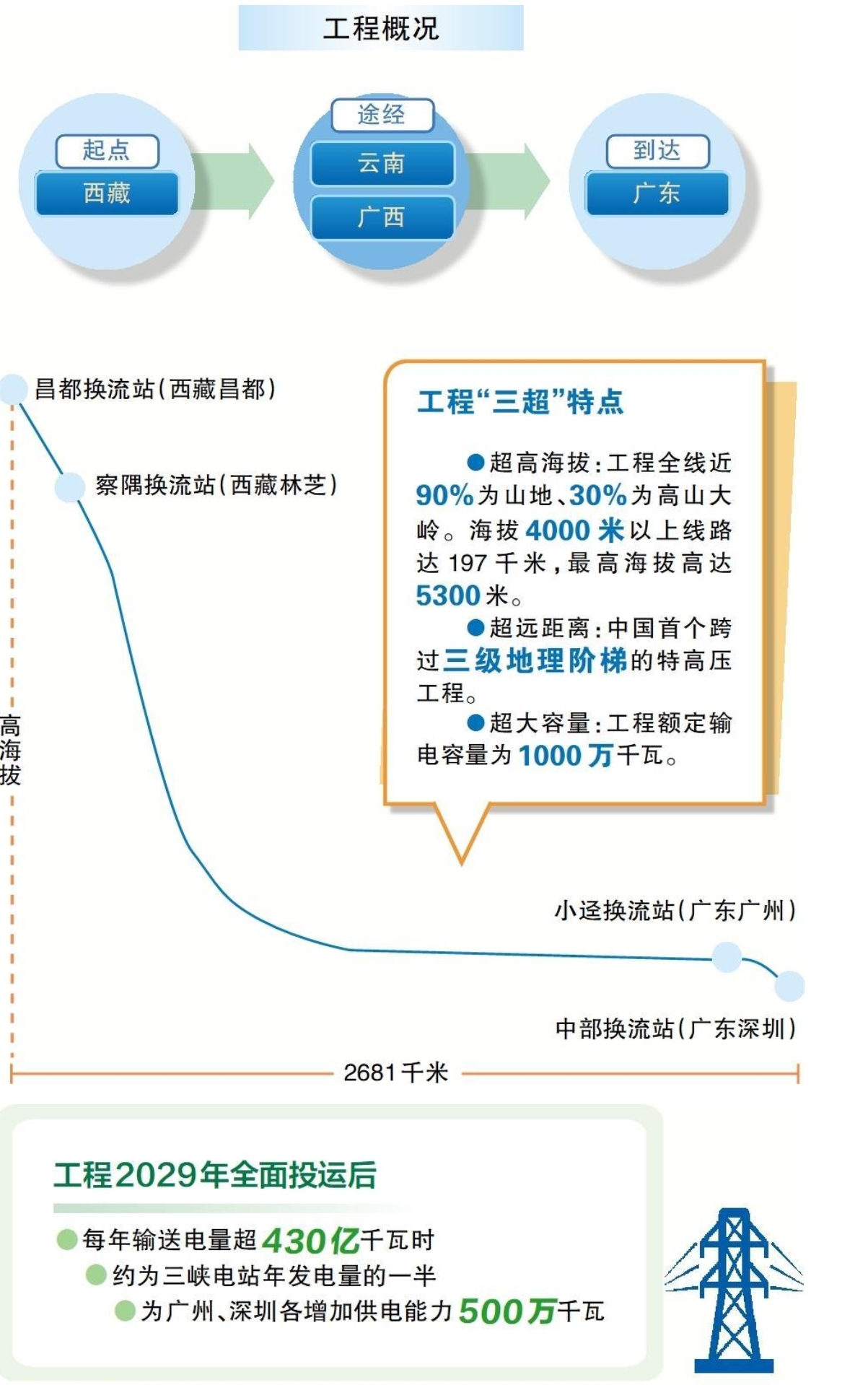 藏粵直流輸電工程啟動(dòng)后,可帶動(dòng)產(chǎn)業(yè)鏈上下游投資超1000億元,創(chuàng)造就業(yè)崗位10萬(wàn)余個(gè)。