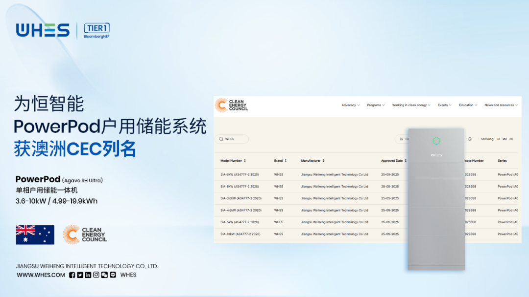 中國儲能網(wǎng)訊:近日,為恒智能PowerPod系列單相戶用儲能一體機(jī)成功通過澳大利亞清潔能源委員會(huì)(Clean Energy Council,CEC)認(rèn)證。至此,為恒智能包含單相、三相,一體機(jī)和分體機(jī)的全線戶用儲能產(chǎn)品均已獲得CEC列名,這既是對公司技術(shù)實(shí)力的權(quán)威認(rèn)可,也標(biāo)志著其在全球化戰(zhàn)略布局中邁出關(guān)鍵一步。