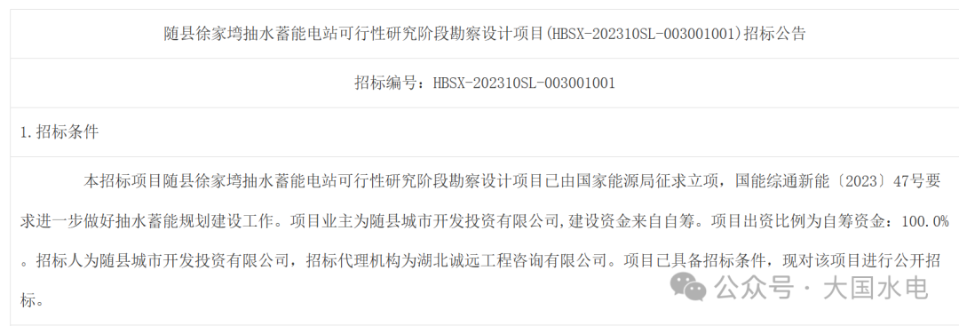 前期階段(2022-2023年)由隨縣城市開(kāi)發(fā)投資有限公司作為項(xiàng)目前期業(yè)主,負(fù)責(zé)項(xiàng)目立項(xiàng)、勘察設(shè)計(jì)及可行性研究招標(biāo)工作。中國(guó)電建集團(tuán)中南勘測(cè)設(shè)計(jì)研究院有限公司以報(bào)價(jià) 158796700 元成功中標(biāo)可行性研究階段勘察設(shè)計(jì)項(xiàng)目。