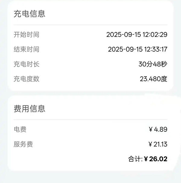 “長途出行嘛,在高速上沒電肯定要充的,就目前來看,只要不選擇在波峰電價(jià)時(shí)段充電,充電費(fèi)用還是要遠(yuǎn)低于油車的。再說高速長途出行畢竟不是常態(tài),只是希望服務(wù)費(fèi)的具體內(nèi)容能更公開透明就好了?!毙P既道出了自己的省錢秘籍,又說出了作為消費(fèi)者內(nèi)心的呼聲。