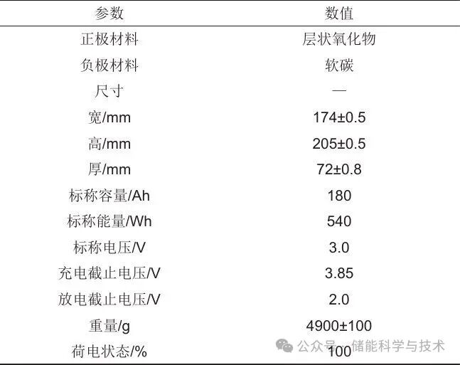 以方形鋁殼180 Ah鈉離子電池單體為研究對(duì)象,電池能量密度約為110 Wh/kg,電池的相關(guān)參數(shù)見表1,實(shí)物如圖1所示。