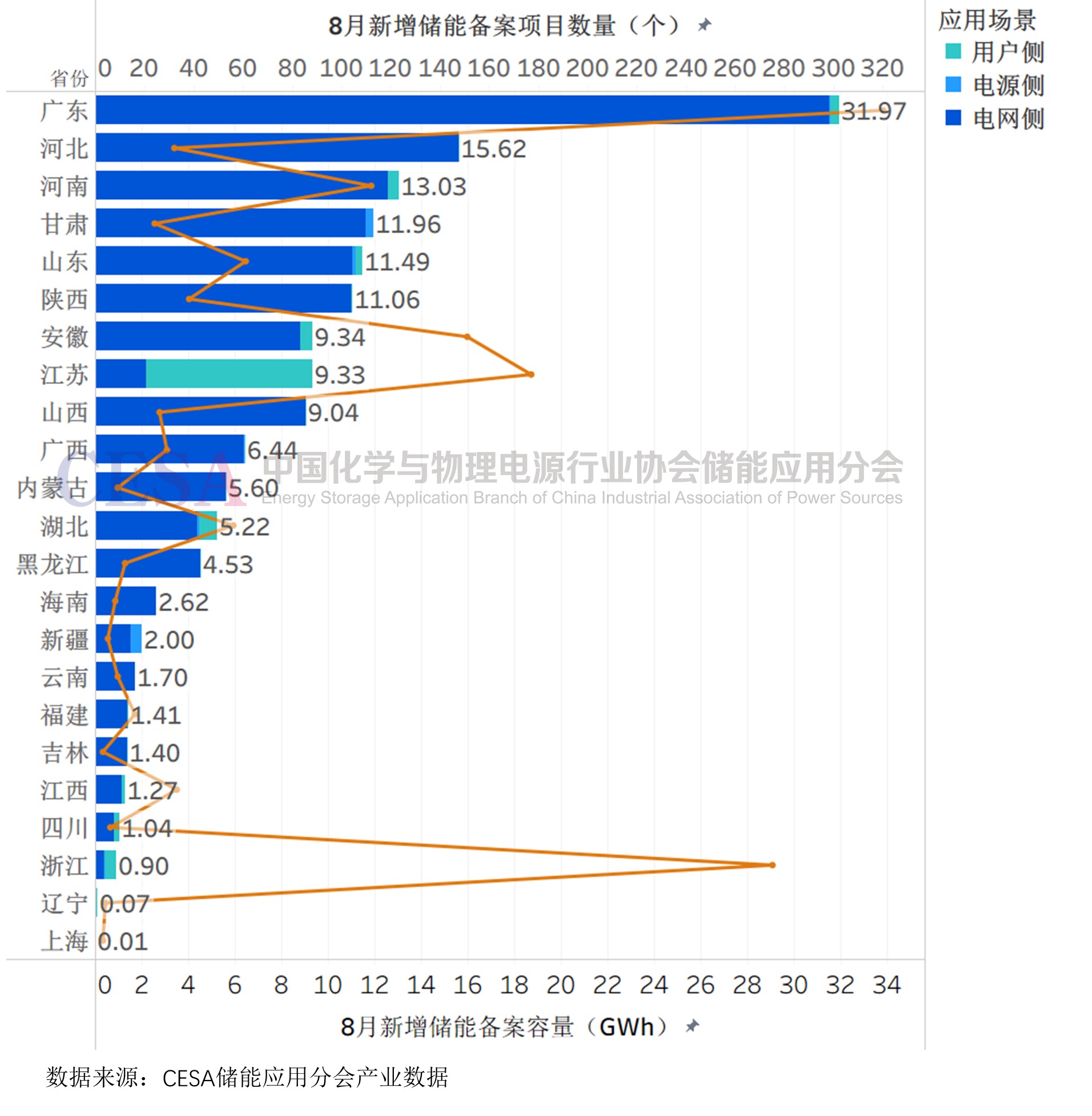 此外,8月甘肅、山東、陜西儲能新增備案規(guī)模均超10GWh,安徽、江蘇、山西儲能新增備案規(guī)模均超9GWh。