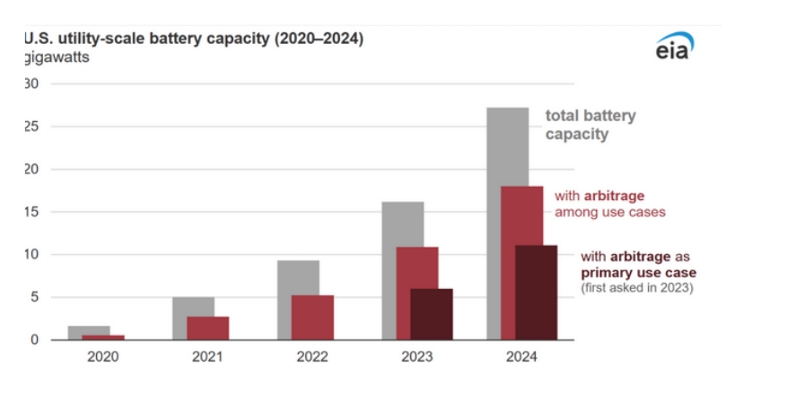 中國儲能網訊:美國能源信息署(EIA)對發(fā)電設施開展的年度調查發(fā)現,2024年,美國運營的公用事業(yè)規(guī)模電池儲能系統(tǒng)大多數用于電價套利。