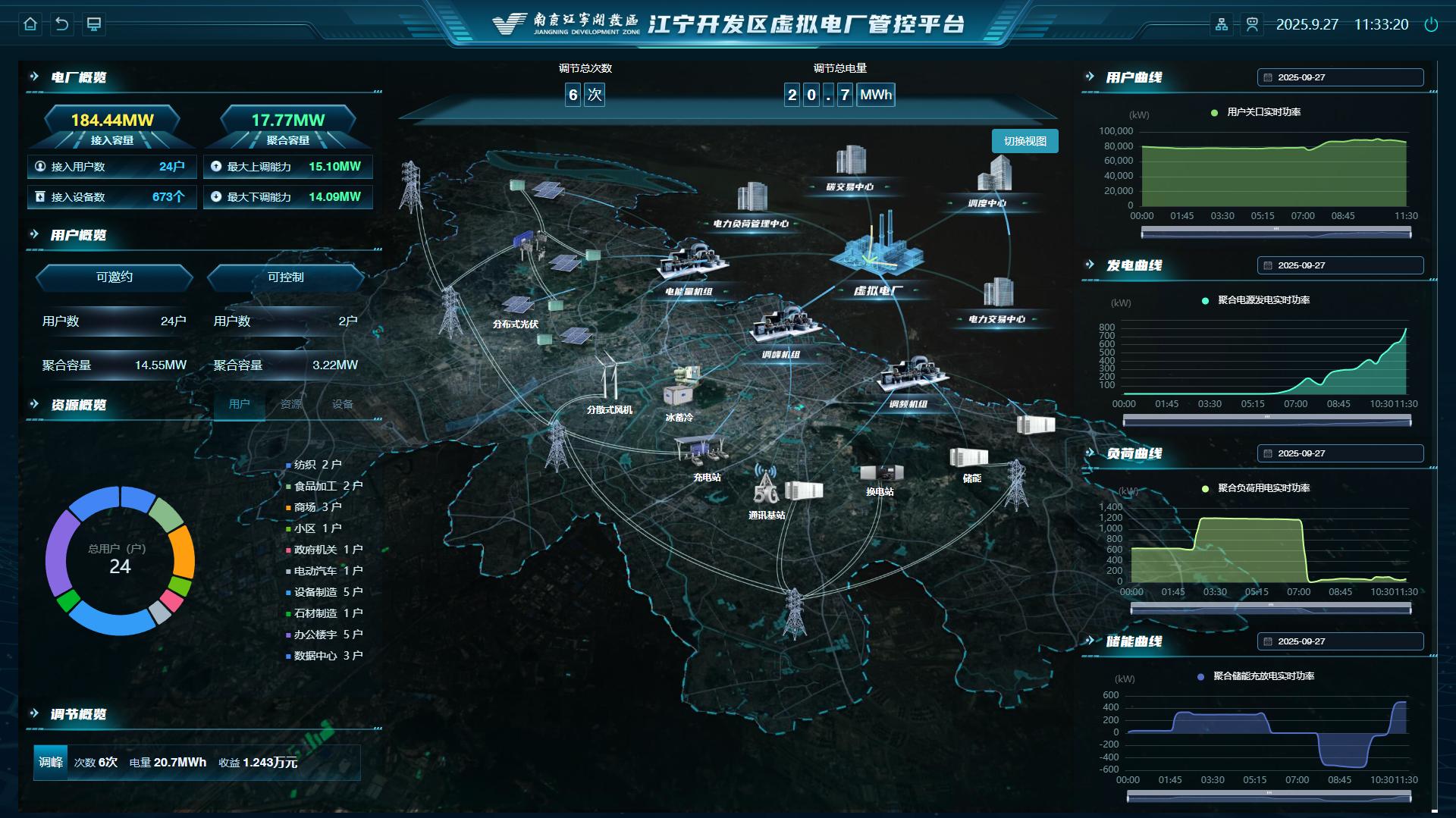 該公司的成立,標(biāo)志著三方合作的項(xiàng)目“江寧開(kāi)發(fā)區(qū)能碳虛擬電廠示范項(xiàng)目”正式邁入實(shí)體化市場(chǎng)運(yùn)營(yíng)新階段。項(xiàng)目綜合運(yùn)用發(fā)電預(yù)測(cè)、負(fù)荷預(yù)測(cè)、價(jià)格預(yù)測(cè)、可調(diào)潛力分析、資源聚合、優(yōu)化調(diào)度、協(xié)調(diào)控制及交易輔助決策等核心技術(shù),聚合區(qū)內(nèi)分布式光伏、儲(chǔ)能、充電樁、空調(diào)負(fù)荷、冰蓄冷、電鍋爐、工業(yè)可調(diào)負(fù)荷等多元化靈活性資源,常態(tài)化參與需求響應(yīng)、電力輔助服務(wù)及電力現(xiàn)貨等市場(chǎng)化交易,為用戶提供智能化、集約化的智慧用能服務(wù)。項(xiàng)目創(chuàng)新性提出“電碳耦合”與“配微協(xié)同”技術(shù),構(gòu)建區(qū)域多層協(xié)同的智慧能碳管控平臺(tái),服務(wù)政府、園區(qū)及企業(yè)建立覆蓋全生命周期、全環(huán)節(jié)、全鏈條的智慧能碳管理系統(tǒng),實(shí)現(xiàn)碳足跡精準(zhǔn)追溯,降低用能成本,有效提升能源綜合利用效率,推動(dòng)區(qū)域碳排放強(qiáng)度持續(xù)降低。項(xiàng)目已接入各類用戶側(cè)資源規(guī)模達(dá)200兆瓦,并于2025年4月成功入選國(guó)家發(fā)展改革委全國(guó)第二批綠色低碳先進(jìn)技術(shù)示范項(xiàng)目清單,成為國(guó)家級(jí)綠色低碳示范標(biāo)桿。