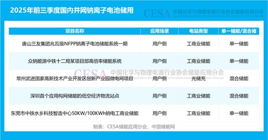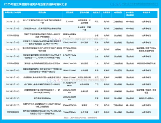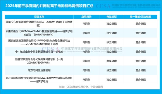 2025年前三季度,國內(nèi)新增并網(wǎng)鈉離子電池儲能項(xiàng)目14個,規(guī)模合計(jì)510.235MW/1431.86MWh,覆蓋河北、寧夏、云南、山東、廣東、青海、陜西、廣西、新疆、內(nèi)蒙古等10余個省份,總裝機(jī)規(guī)模超百萬千瓦級。