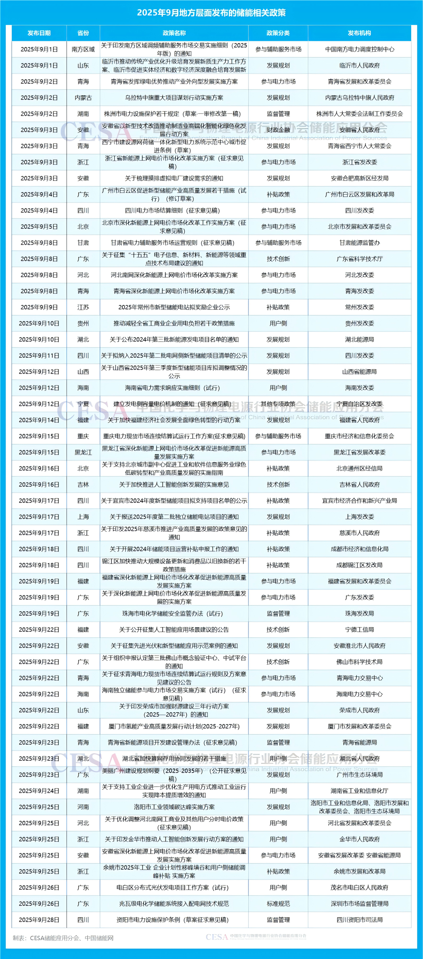 9月12日,國家發(fā)展改革委、國家能源局印發(fā)《新型儲能規(guī)?;ㄔO(shè)專項行動方案(2025—2027年)》。文件指出,2027年,全國新型儲能裝機規(guī)模達到1.8億千瓦以上,帶動項目直接投資約2500億元,新型儲能技術(shù)路線仍以鋰離子電池儲能為主,各類技術(shù)路線及應(yīng)用場景進一步豐富,培育一批試點應(yīng)用項目,打造一批典型應(yīng)用場景。