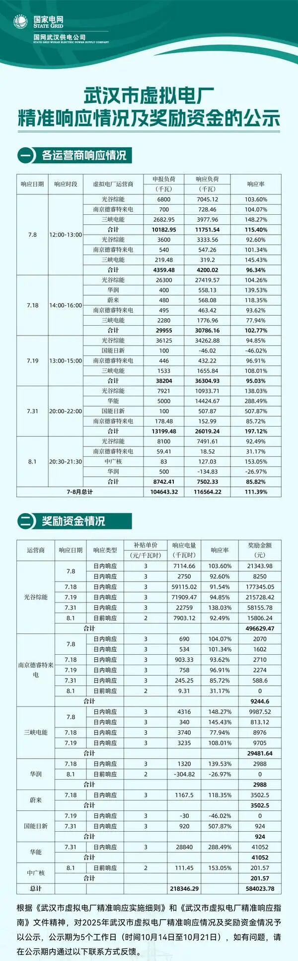 中國儲能網(wǎng)訊:近日,國網(wǎng)湖北武漢供電公司對武漢市虛擬電廠精準(zhǔn)響應(yīng)情況及獎勵資金情況進行了公示。
